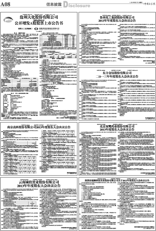 西陇化工股份有限公司关于2013年年度股东大会决议的公告