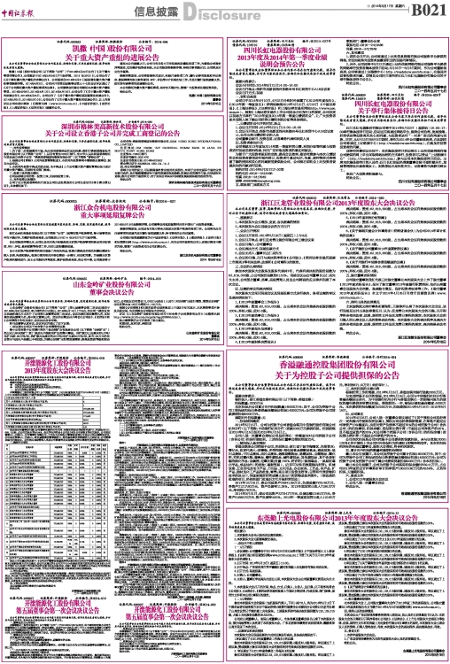 山东金晶科技股份有限公司关于召开2013年年度股东大会的提示性公告