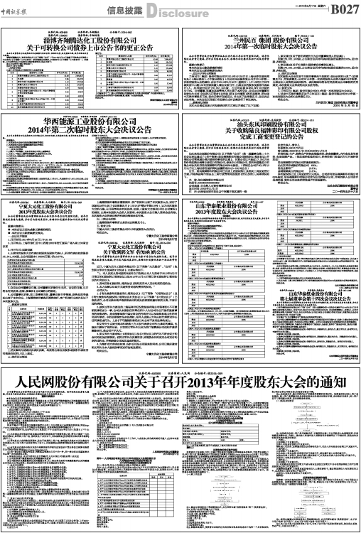 人民网股份有限公司关于召开2013年年度股东大会的通知