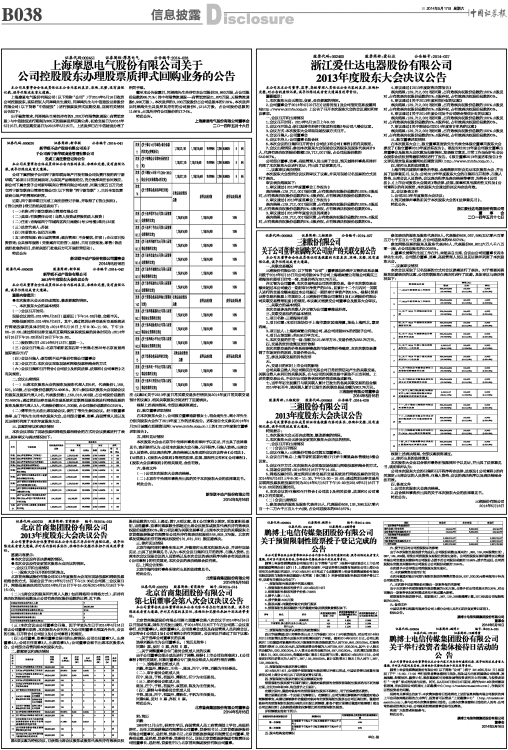 第三十八次股东大会(2013年年会)决议公告