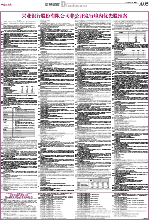 兴业银行股份有限公司非公开发行境内优先股预案