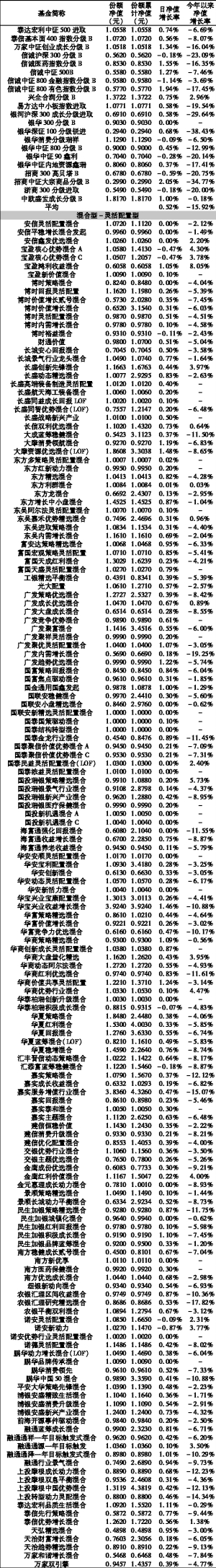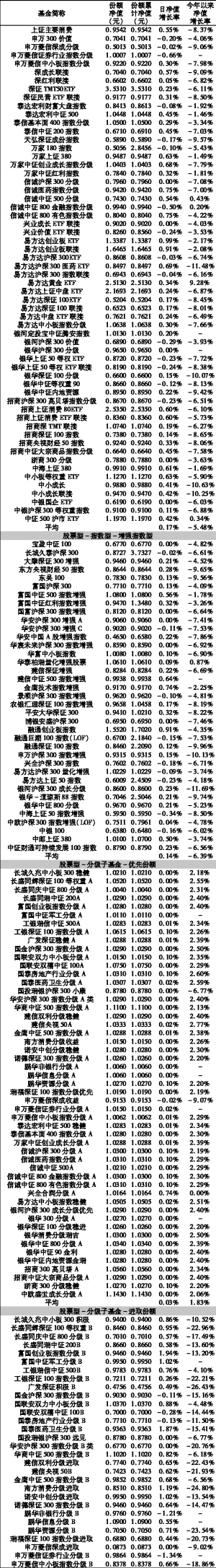 基金净值日报表