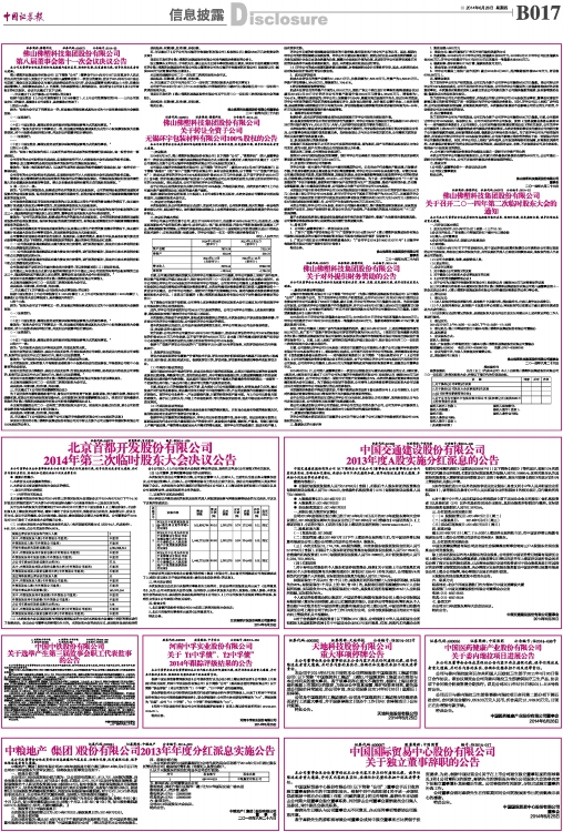 中粮地产(集团)股份有限公司2013年年度分红派息实施公告
