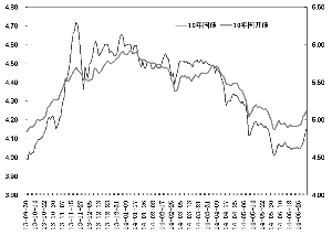 银行间市场10年期国债与国开债收益率走势
