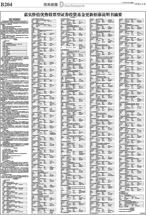 嘉实价值优势股票型证券投资基金更新招募说明书摘要