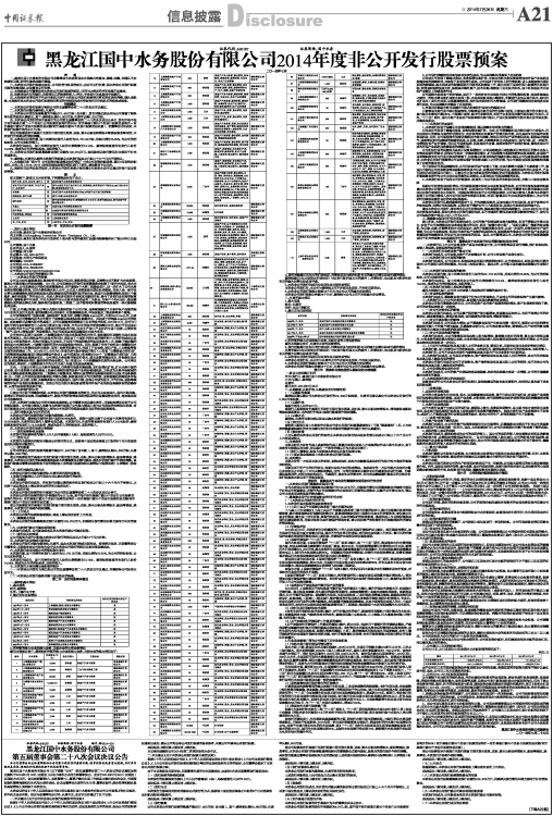 黑龙江国中水务股份有限公司2014年度非公开发行股票预案