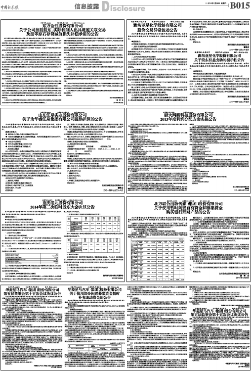 ●现金红利发放日:2014年8月1日