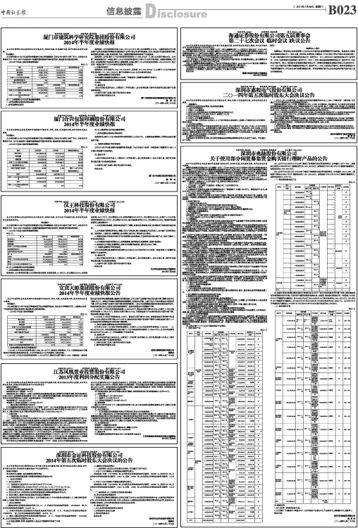 汉王科技股份有限公司 2014年半年度业绩快报 |