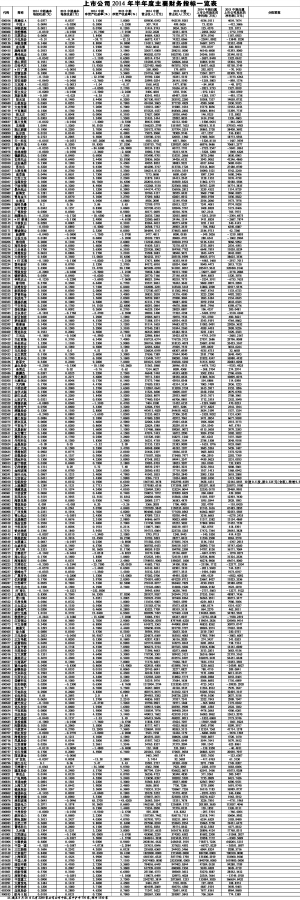 上市公司2014年半年度主要财务指标一览表