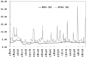 银行间与上交所隔夜质押式回购加权平均利率走势对比