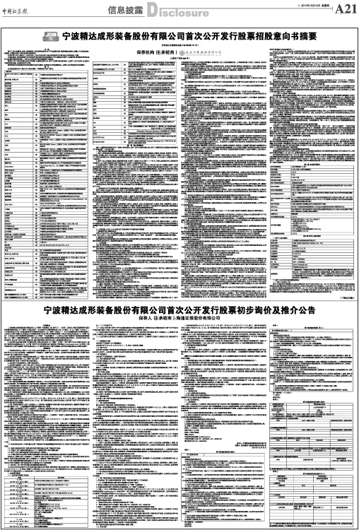 宁波精达成形装备股份有限公司首次公开发行股票初步询价及推介公告
