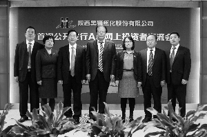 李保平:煤炭的主产地在西北,煤炭的出路在煤化。黑猫上市以后瞄准西北的煤化工项目,优中选优适时进入。当然了,它的上市也给西北的煤化工企业开了个头,我们将会进一步相互交流,鼓励支持别的企业把西北煤化工或者是其它行业做强做大。为区域经济的发展,区域就业做出更大贡献。
