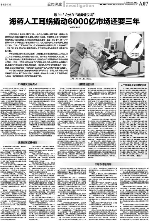 海药人工耳蜗撬动6000亿市场还要三年