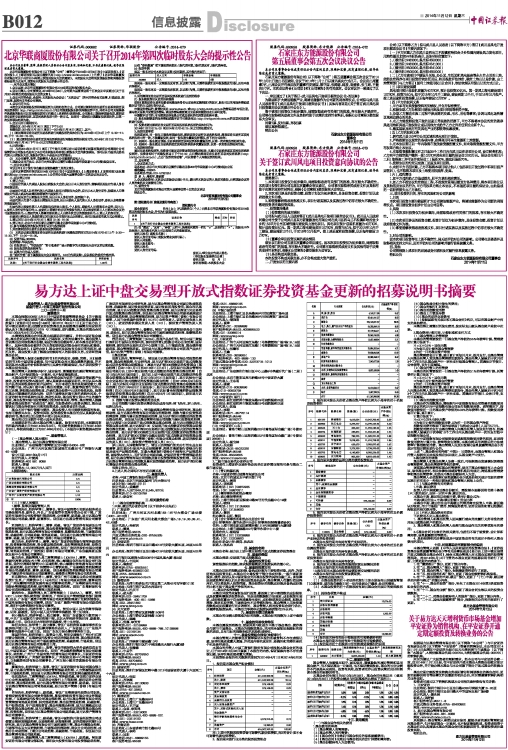 易方达上证中盘交易型开放式指数证券投资基金更新的招募说明书摘要