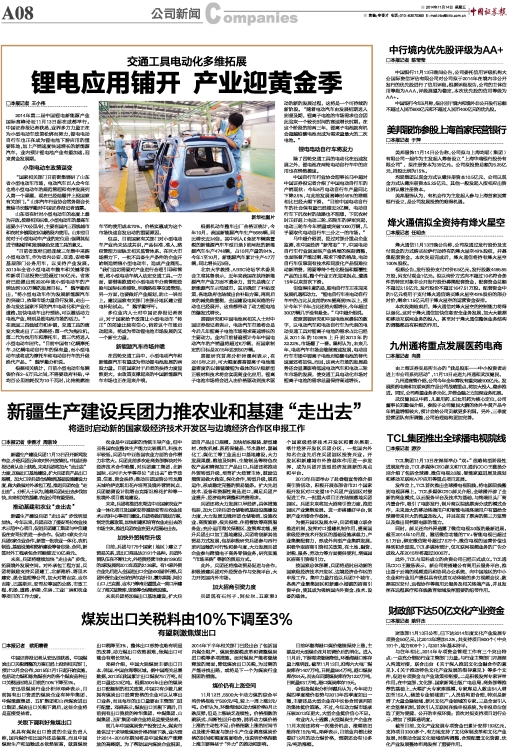 锂电应用铺开 产业迎黄金季