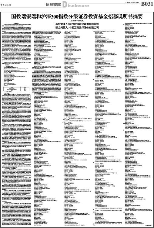 国投瑞银瑞和沪深300指数分级证券投资基金招募说明书摘要
