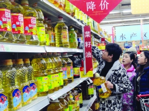 “买大送小”、“买三送一”、“买食用油送橄榄油”……近期,食用油价格罕见大跌近三成,创了近6年新低,各大超市里挂出各种促销口号,引来“中国大妈”纷纷驻足,食用油“一买三五桶”已成超市司空见惯的现象。