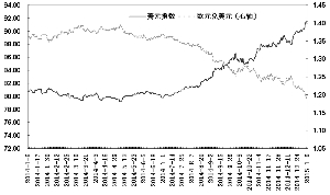 而与此同时,作为美元指数中权重最大的两个货币品种,欧元和日元面临的形势与美元截然相反。经济方面,欧元区和日本经济复苏节奏明显滞后于美国。去年10月,IMF上调美国2015年经济增速至3.1%,同时将欧元区和日本的经济增速分别下调至1.3%和0.8%。货币政策方面,在经济低迷、通缩压力加剧的背景下,欧日央行陷入持续扩张资产负债表的泥潭。2014年,欧洲央行先后推出降息、实施存款负利率、量宽加码等措施。1月2日,欧洲央行行长德拉吉暗示将启动大规模购买政府债券的全面QE,导致当日欧元兑美元应声下挫,美元指数全天大涨近1%;无独有偶,日本央行在去年10月底意外宣布加快货币扩张,意味着其宽松的步伐尚未停歇。