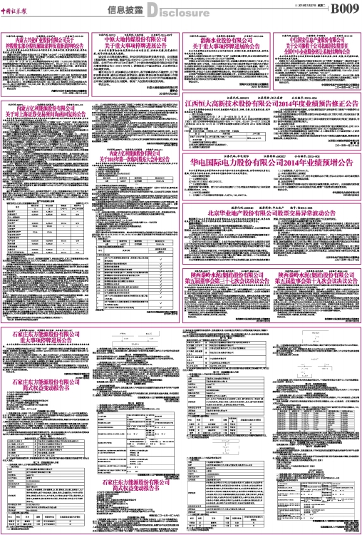 江西恒大高新技术股份有限公司2014年度业绩预告修正公告