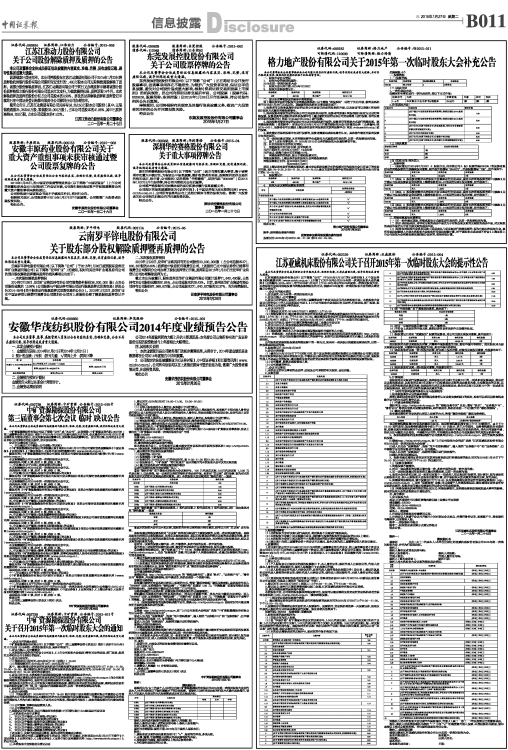 股票代码:000828 股票简称:东莞控股 公告编号:2015-002