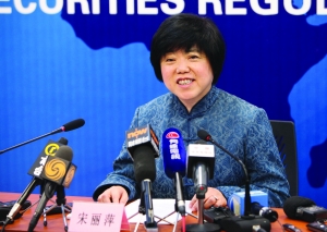 全国人大代表、深交所总经理宋丽萍在记者会上答记者问。