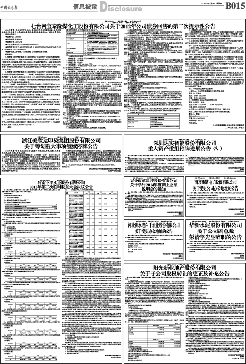 七台河宝泰隆煤化工股份有限公司关于2012年公司债券回售的第二次提示性公告
