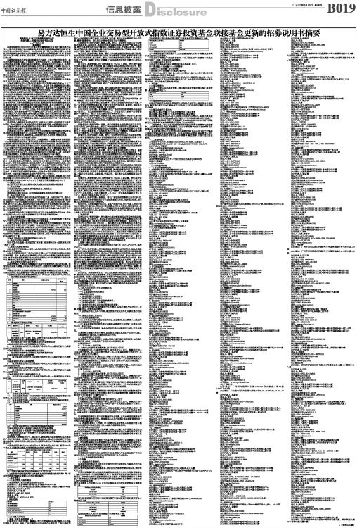 易方达恒生中国企业交易型开放式指数证券投资基金联接基金更新的招募说明书摘要