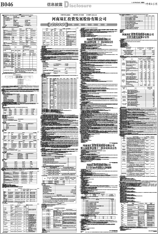 证券代码:000895 证券简称:双汇发展 公告编号:2015-08