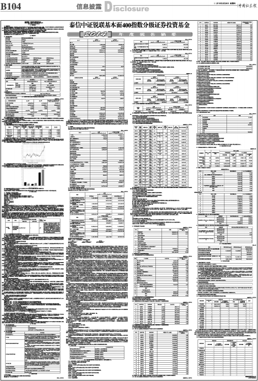 2014年国内A股市场表现突出,全年上证综指上涨52.87%, 沪深300上涨51.66%,基本面400上涨44.90%。同期泰信基本面400指数基金上涨38.86%,比较基准同期表现为上涨43.39%。