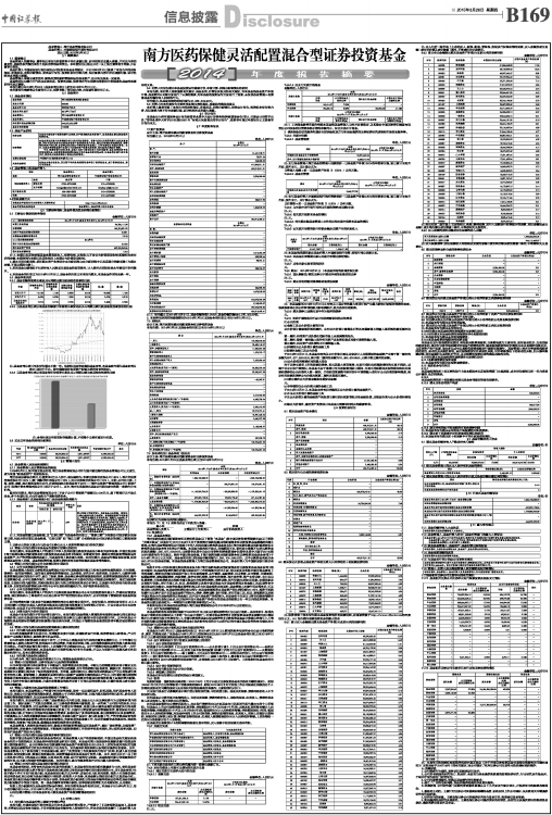 根据《中华人民共和国证券投资基金法》和《南方医药保健灵活配置混合型证券投资基金基金合同》的有关规定,本基金的投资范围包括国内依法发行上市的股票(包括中小板、创业板及其他经中国证监会核准上市的股票)、债券(包括国内依法发行和上市交易的国债、央行票据、金融债券、企业债券、公司债券、中期票据、短期融资券、超短期融资券、次级债券、政府支持机构债、政府支持债券、地方政府债、资产支持证券、中小企业私募债券、可转换债券及其他经中国证监会允许投资的债券)、债券回购、银行存款(包括协议存款、定期存款及其他银行存款)、货币市场工具、权证、股指期货以及经中国证监会允许基金投资的其他金融工具(但须符合中国证监会相关规定)。如法律法规或监管机构以后允许基金投资其他品种,基金管理人在履行适当程序后,可以将其纳入投资范围。本基金的投资组合比例为:本基金股票投资占基金资产的比例范围为0-95%,投资于医药保健行业证券不低于非现金基金资产的80%。债券、债券回购、银行存款、货币市场工具、权证、股指期货以及经中国证监会允许基金投资的其他金融工具不低于基金资产净值的5%。本基金每个交易日日终在扣除股指期货合约需缴纳的交易保证金后,应当保持不低于基金资产净值5%的现金或者到期日在一年以内的政府债券。本基金的业绩比较基准为:一年期银行定期存款利率(税后)+1%。
