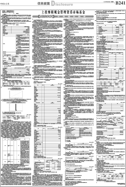 上投摩根现金管理货币市场基金2014年度财务会计报告已由普华永道中天会计师事务所有限公司审计、注册会计师汪棣、王灵签字出具了“无保留意见的审计报告”(编号:普华永道中天审字(2015)第20488号)。