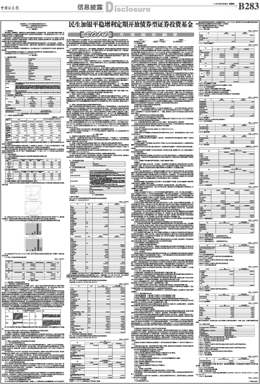 注:报告截止日2014年12月31日,基金份额总额1,269,140,936.16份,其中民生加银平稳增利定期开放债券型证券投资基金A类份额净值1.061元,份额总额1,012,946,576.52份;民生加银平稳增利定期开放债券型证券投资基金C类份额净值1.058元,份额总额256,194,359.64份。