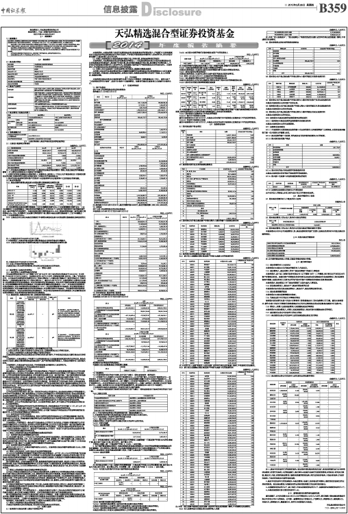 本托管人依法对天弘基金管理有限公司编制和披露的天弘精选混合型证券投资基金2014年年度报告中财务指标、净值表现、利润分配情况、财务会计报告、投资组合报告等内容进行了核查,以上内容真实、准确和完整。