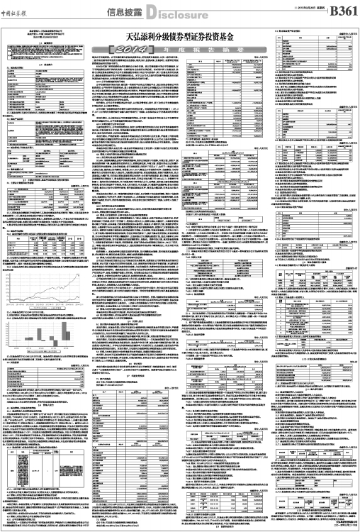 注:报告截止日2014年12月31日,天弘添利分级债券型证券投资基金的份额净值1.245元,天弘添利分级债券型证券投资基金A级基金份额参考净值1.003元,天弘添利分级债券型证券投资基金B级基金份额参考净值1.303元;基金份额总额1,241,977,695.32份,其中天弘添利分级债券型证券投资基金A级基金份额241,997,863.65份,天弘添利分级债券型证券投资基金B级基金份额999,979,831.67份。