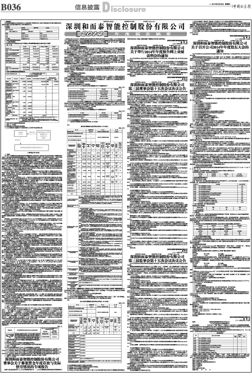 证券代码:002402 证券简称:和而泰 公告编号:2015-019