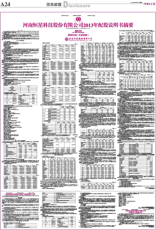 河南恒星科技股份有限公司2013年配股说明书摘要