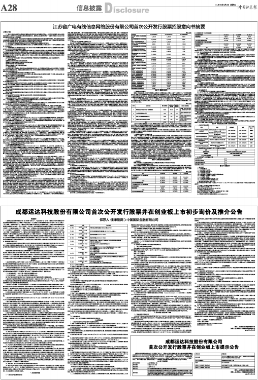 成都运达科技股份有限公司首次公开发行股票并在创业板上市初步询价及推介公告