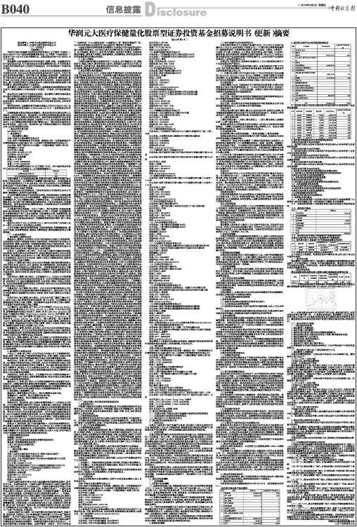 华润元大医疗保健量化股票型证券投资基金招募说明书(更新)摘要