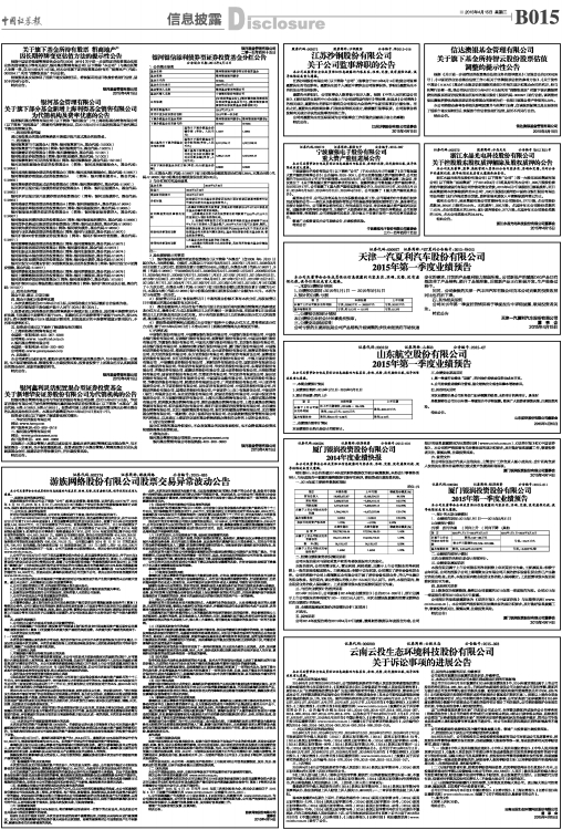 河南佰利联化学股份有限公司2015年第一季度业绩预告