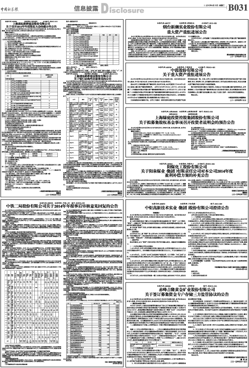 关于阳泉煤业(集团)有限责任公司对本公司2014年度