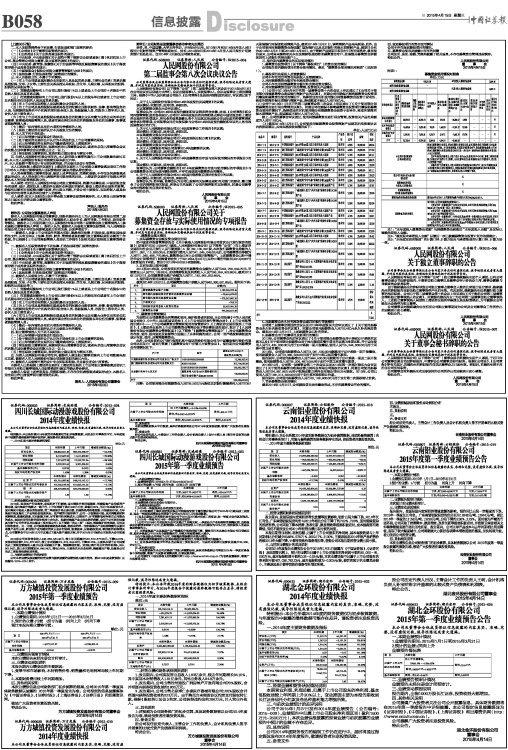 河南佰利联化学股份有限公司2015年第一季度业绩预告