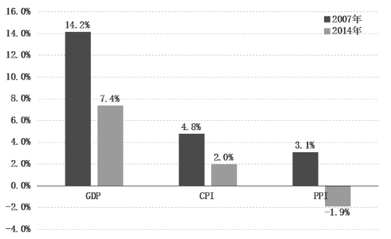 2007年与2014年主要宏观经济数据同比增速