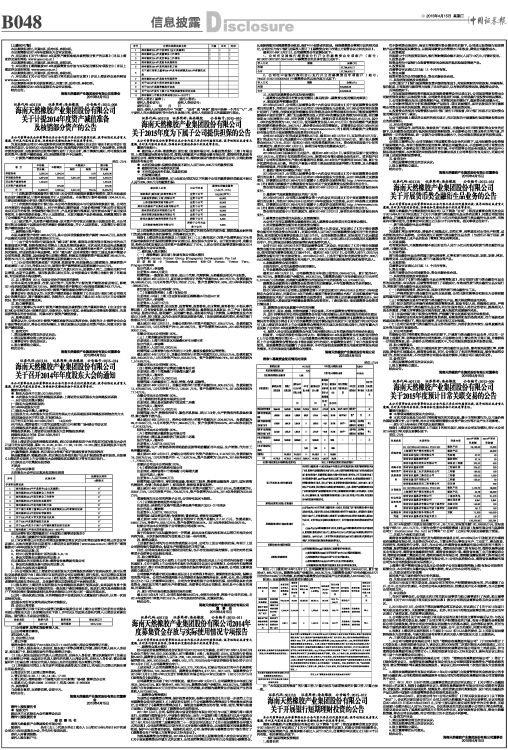 以上审议事项已分别经公司第四届董事会第五次会议和第四届监事会第三次会议审议通过,具体内容请关注近期将在上海证券交易所网站(www.sse.com.cn)发布的“海南橡胶2014年年度股东大会资料”。