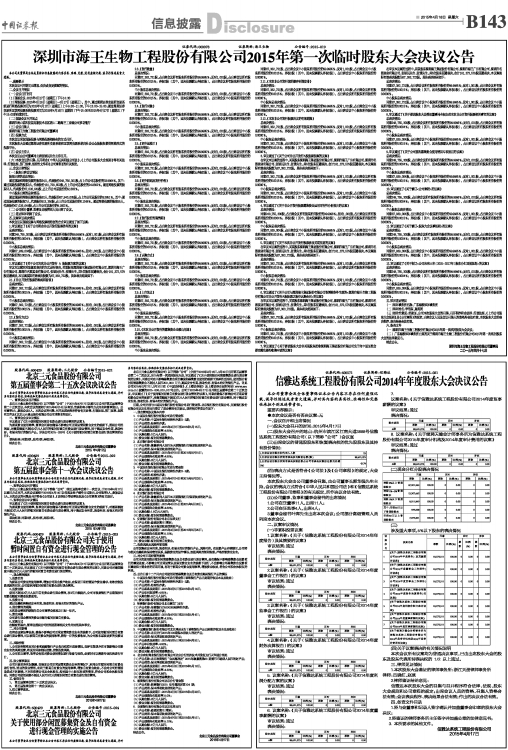 深圳市海王生物工程股份有限公司2015年第一次临时股东大会决议公告