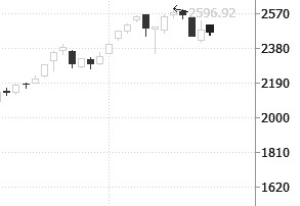 本周一,在将历史新高推升至2596.92点后,创业板指出现了高位回落走势,周三更大跌4.58%,创2014年12月22日以来的最大单日跌幅。周K线上依然收出中阴,周跌幅为3.48%。今年以来,创业板遭遇资金爆炒,并不断上演新高秀,但近期估值风险开始暴露,短期料仍延续调整态势。