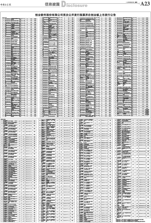 创业软件股份有限公司首次公开发行股票并在创业板上市发行公告
