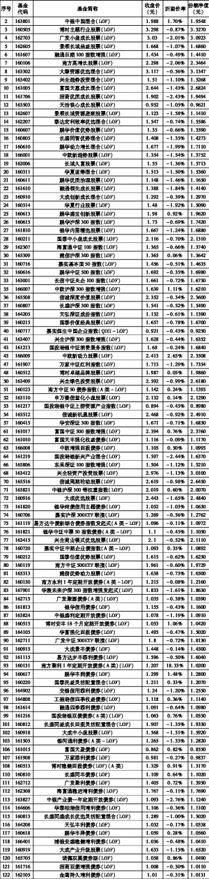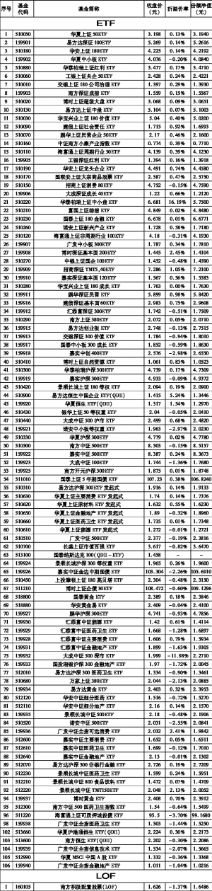 中国银河证券·交易所基金绩效日报表