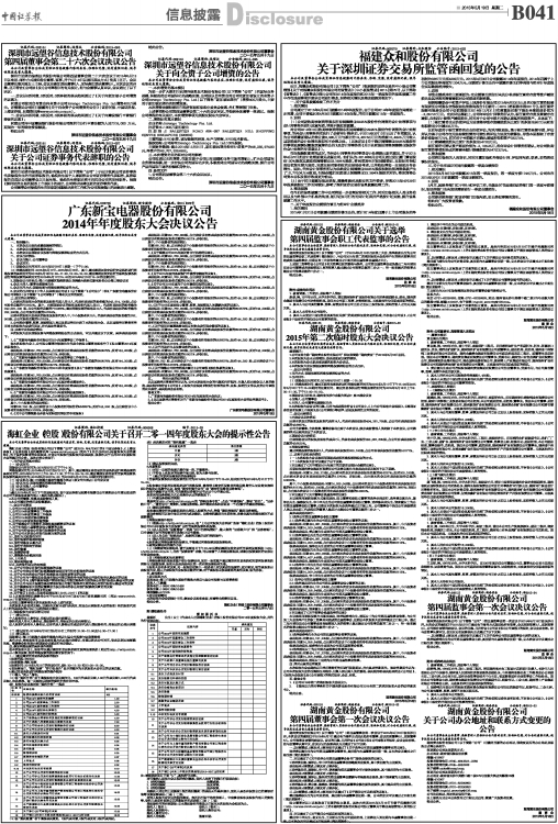 海虹企业(控股)股份有限公司关于召开二零一四年度股东大会的提示性公告