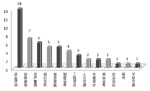 2014年度,会计师事务所出具的内部控制审计报告中,认定上市公司存在非财报内部控制重大缺陷的共13家,缺陷共计14项。根据缺陷所涉及的业务活动/事项,分别为组织架构类缺陷9项,占比64.29%;信息披露类缺陷3项,占比21.43%;社会责任类缺陷2项,占比14.29%。如图6所示。