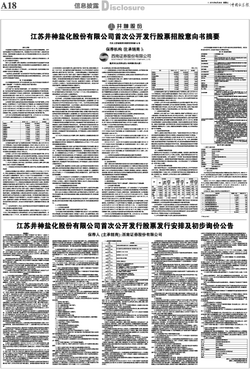 江苏井神盐化股份有限公司首次公开发行股票招股意向书摘要